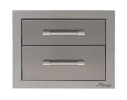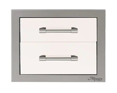 For any outdoor kitchen, Alfresco provides an extensive assortment of doors and drawers that offer practical and well-organised storage. These useful and practical outdoor island components are made of 304 stainless steel, which guarantees that they will withstand weather conditions and stand the test of time in any setting. German-engineered soft-close hardware on this 17-inch, two-tiered double drawer set gives a pleasant sensation and less strain on moving components. To enhance accessibility, drawers are fully extended and may be pulled out using robust slides.