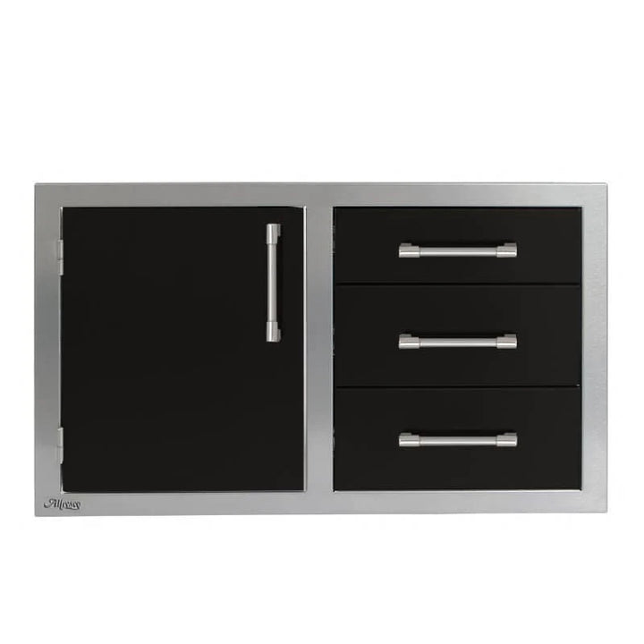 Alfresco 32-Inch Stainless Steel Left-Hinged Soft-Close Door & Triple Drawer Combo - Jet Black-Gloss - AXE-DDC-L-SC-S9005