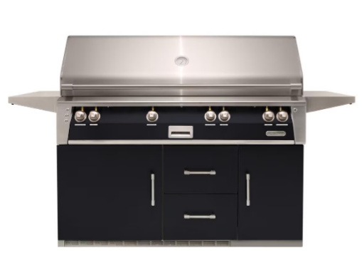Transform your outdoor kitchen with the Alfresco 56'' Sear Zone Grill on Refrigerated Base in a striking Jet Black Gloss finish. This high-performance grill, available in both liquid propane (LP) and natural gas (NG) models (ALXE-56BFGR-LP-S9005 / ALXE-56BFGR-NG-S9005), combines professional-grade grilling with the convenience of integrated refrigeration, all presented in a sleek, modern design.