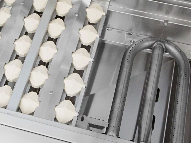 Even Heat Distribution: Ceramic briquettes and stainless steel grates provide consistent heat distribution for evenly cooked food.
