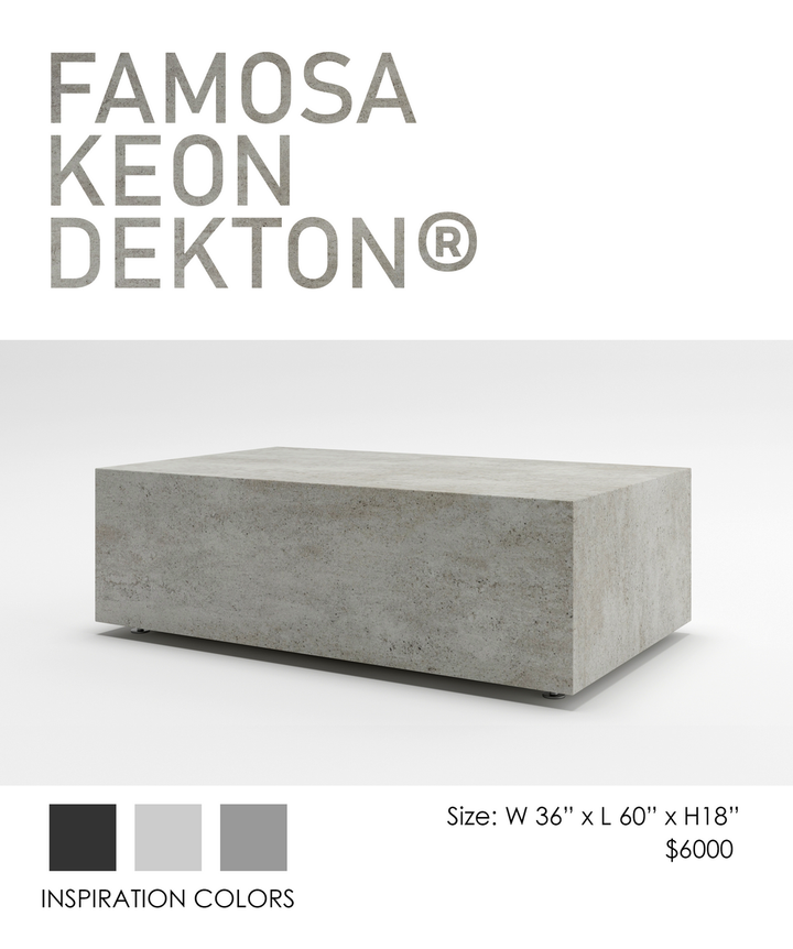 The COOKE Famosa table is your canvas. This contemporary indoor / outdoor table is a bench, a geometric form, a canvas of colors, perfectly clad in your choice of premium stone. We build your vision, your size, your colors, we make your space yours.