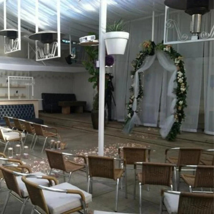 Hanging Design: Frees up valuable patio space by mounting the heater from above.