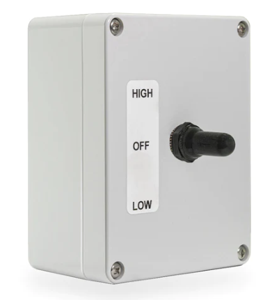 - Easy operation with a simple 3-position control switch (Off, High, Low)