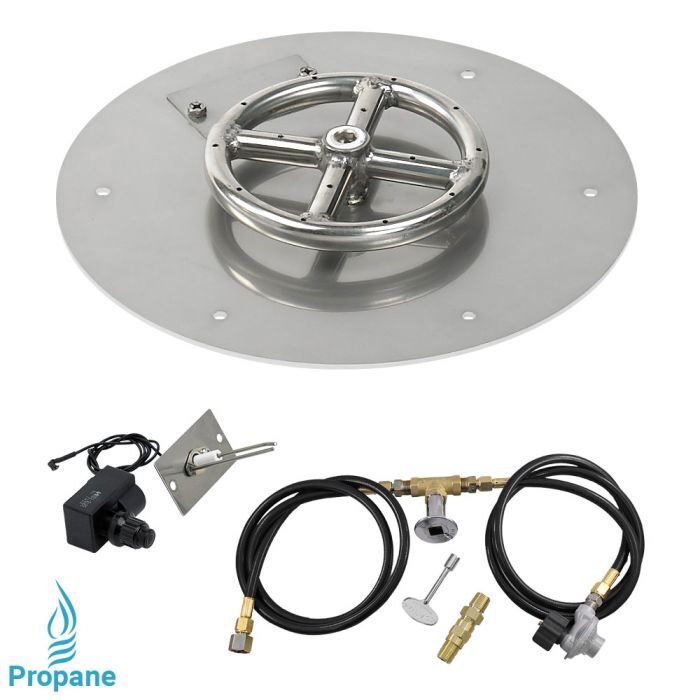 American Fire Glass 12" Round Stainless Steel Flat Pan with Spark Ignition Kit