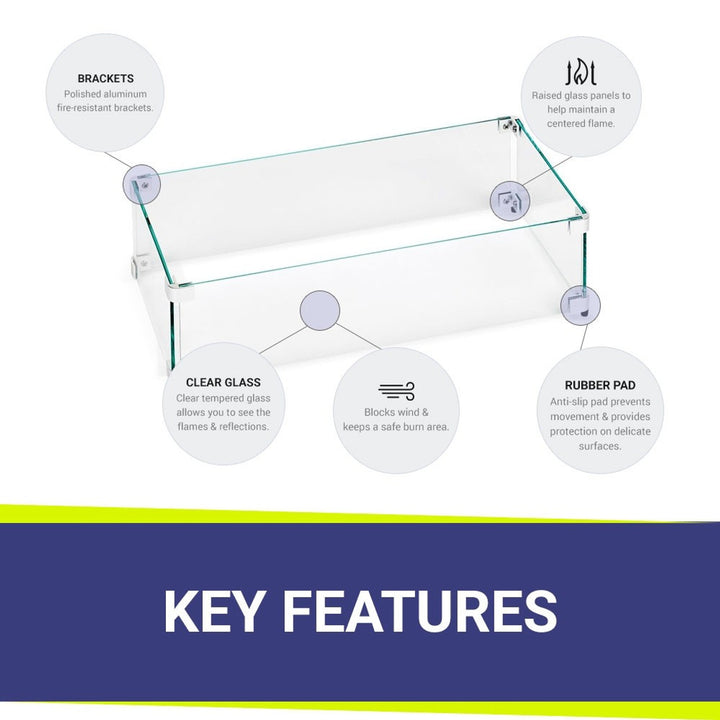American Fire Glass 18" Rectangular Glass Wind and Flame Guard