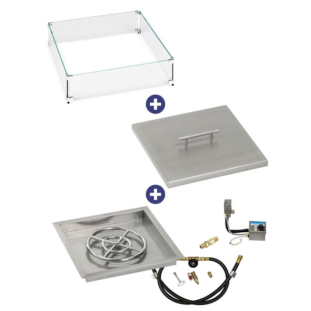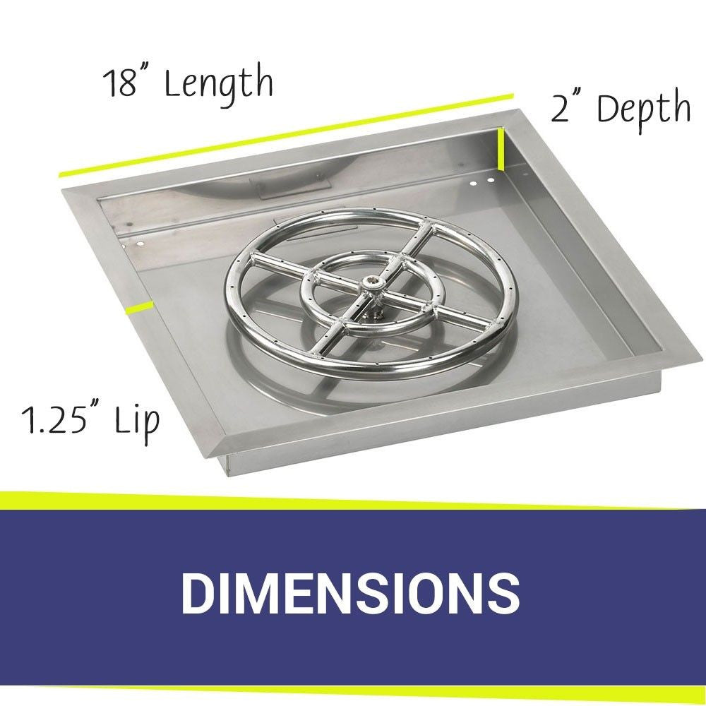 American Fire Glass 18" Square Stainless Steel Drop-In Pan with AWEIS System (12 Ring) Bundle!