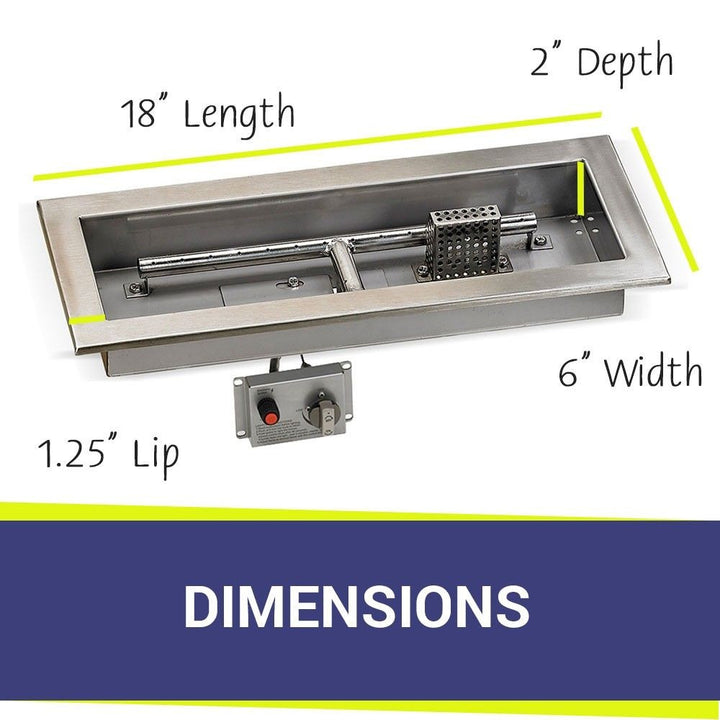 American Fire Glass 18" x 6" Rectangular Drop-in Fire Pit Pan with Electric Ignition System Kit (CSA Certified)