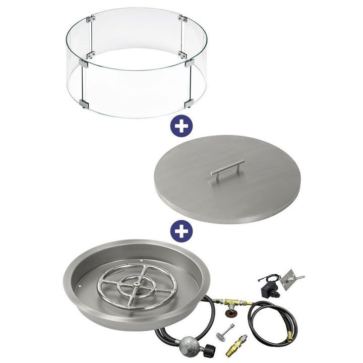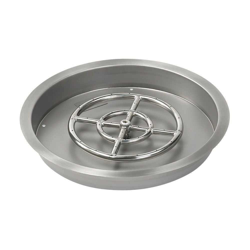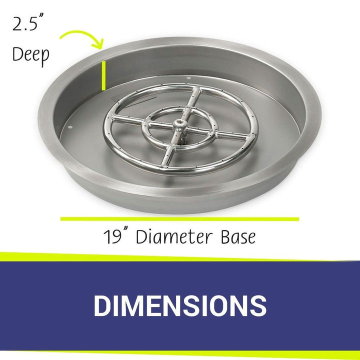 This bundle by American Fire Glass provides everything you need for a complete and convenient fire pit experience. It includes a 19" round, stainless steel drop-in fire pan with a built-in 12" fire pit ring burner, and a spark ignition kit for easy lighting.