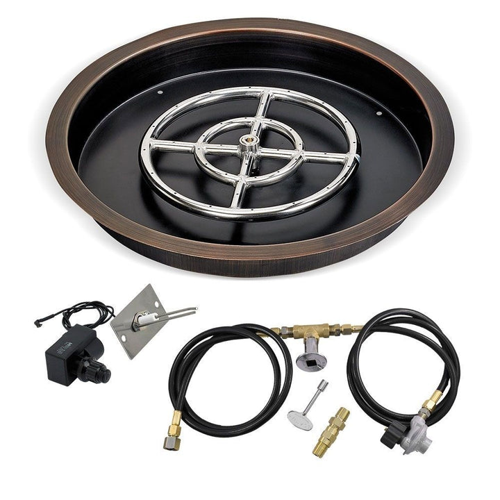 American Fire Glass 19" Round Oil Rubbed Bronze Drop-In Pan with Spark Ignition Kit