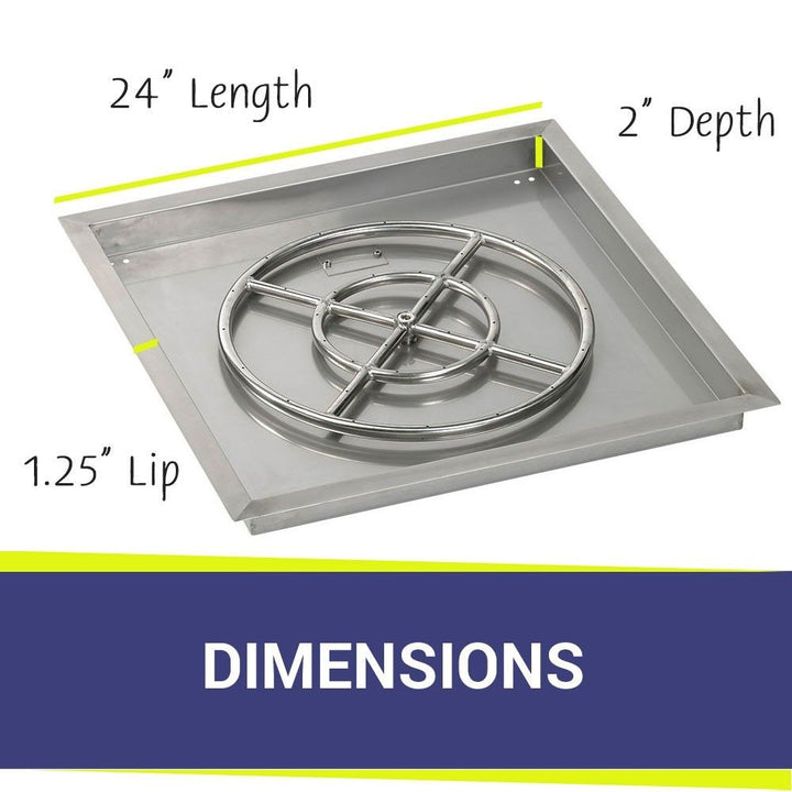 Reduced Fire Glass Consumption: The 24" square drop-in pan acts as a false bottom, creating a deeper fire pit look while requiring less fire glass.