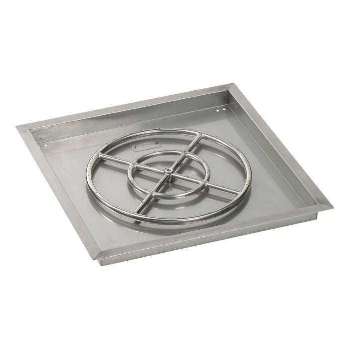 - 24" Square Drop-In Burner Pan: Made from durable, 100% stainless steel, this pan features a raised lip for easy installation and removal from your fire pit. It also includes weep holes to prevent water buildup and extend the life of the pan.