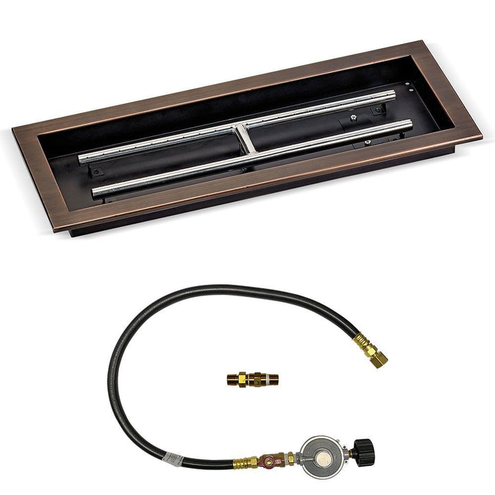 Create a stunning and functional focal point for your patio with the American Fire Glass 24" x 8" Rectangular Drop-In Pan with Match Light Kit. This easy-to-install kit includes everything you need for a safe and reliable fire feature in a sleek oil rubbed bronze finish.