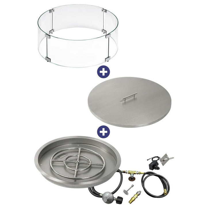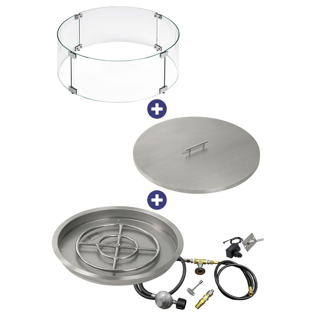 Enjoy a warm and inviting fire in your fire pit with the American Fire Glass 25" Round Drop-In Pan with Spark Ignition Kit. This complete bundle includes everything you need for a hassle-free fire feature, available in both propane and natural gas versions.