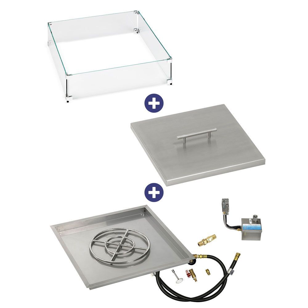 American Fire Glass 30" Square Stainless Steel Drop-In Pan with AWEIS System (18 Ring) Bundle