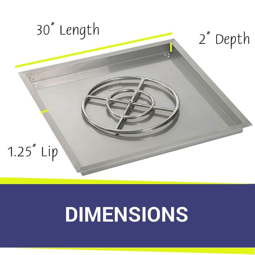 - 30" Square Stainless Steel Drop-In Pan: Crafted from high-quality 304 stainless steel, this pan offers superior durability and weather resistance. It features a convenient lip for easy installation into your existing fire pit, creating a false bottom that reduces the amount of fire glass required.