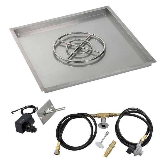 Enjoy the warmth and ambiance of a fire pit with the American Fire Glass 36" Square Stainless Steel Drop-In Pan with Spark Ignition Kit. This easy-to-use kit provides everything you need to create a beautiful and functional fire feature in your outdoor space.
