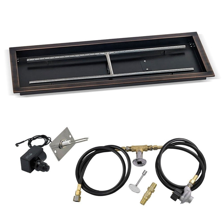 American Fire Glass 36" x 12" Rectangular Drop-In Fire Pit Pan with Spark Ignition Kit