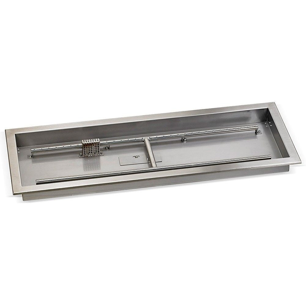 This bundle provides everything you need to create a stunning and safe fire pit in your outdoor space. The centerpiece is the American Fire Glass 36" x 12" rectangular fire pit pan, crafted from high-quality 304 stainless steel for durability and a sleek look. The built-in H-burner ensures even heat distribution, while the electric ignition system allows for safe and convenient flame control with the push of a button.