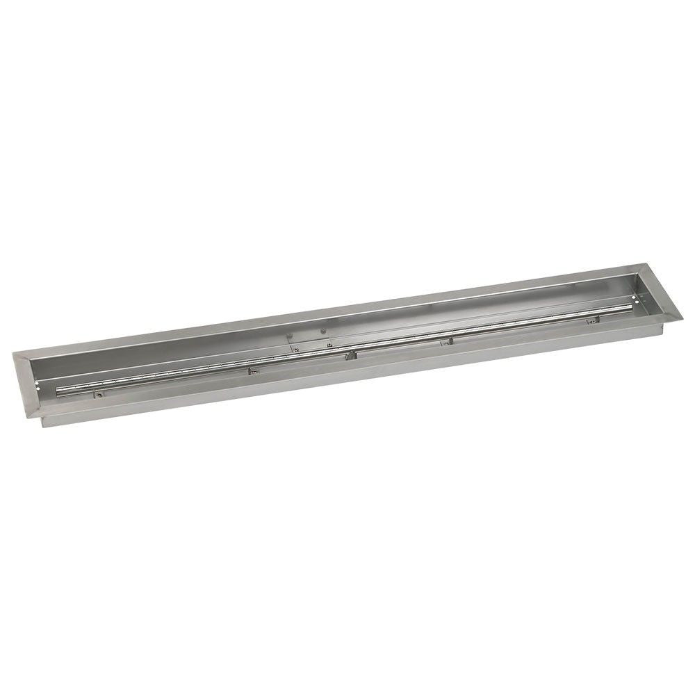 - Pan: The centerpiece is a 48-inch long by 6-inch wide linear stainless steel fire pit pan. It features a 2-inch deep bowl with a 1.25-inch lip around the top for a clean look and safe fire containment.