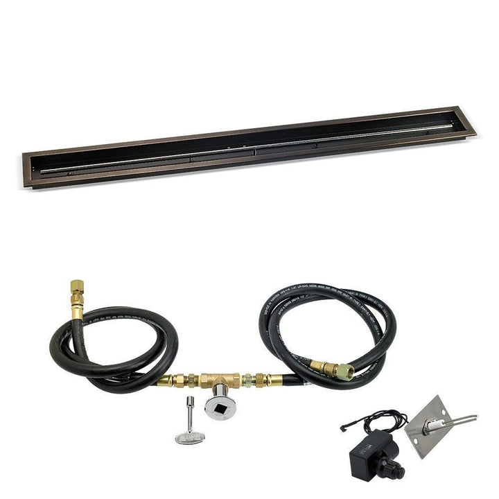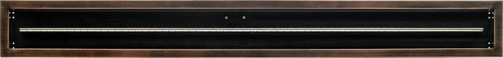 American Fire Glass Linear Fire Pit Pan. This handcrafted fire pit pan boasts a sleek, 72-inch long design in a rich oil rubbed bronze finish, adding a touch of modern elegance to your outdoor space.