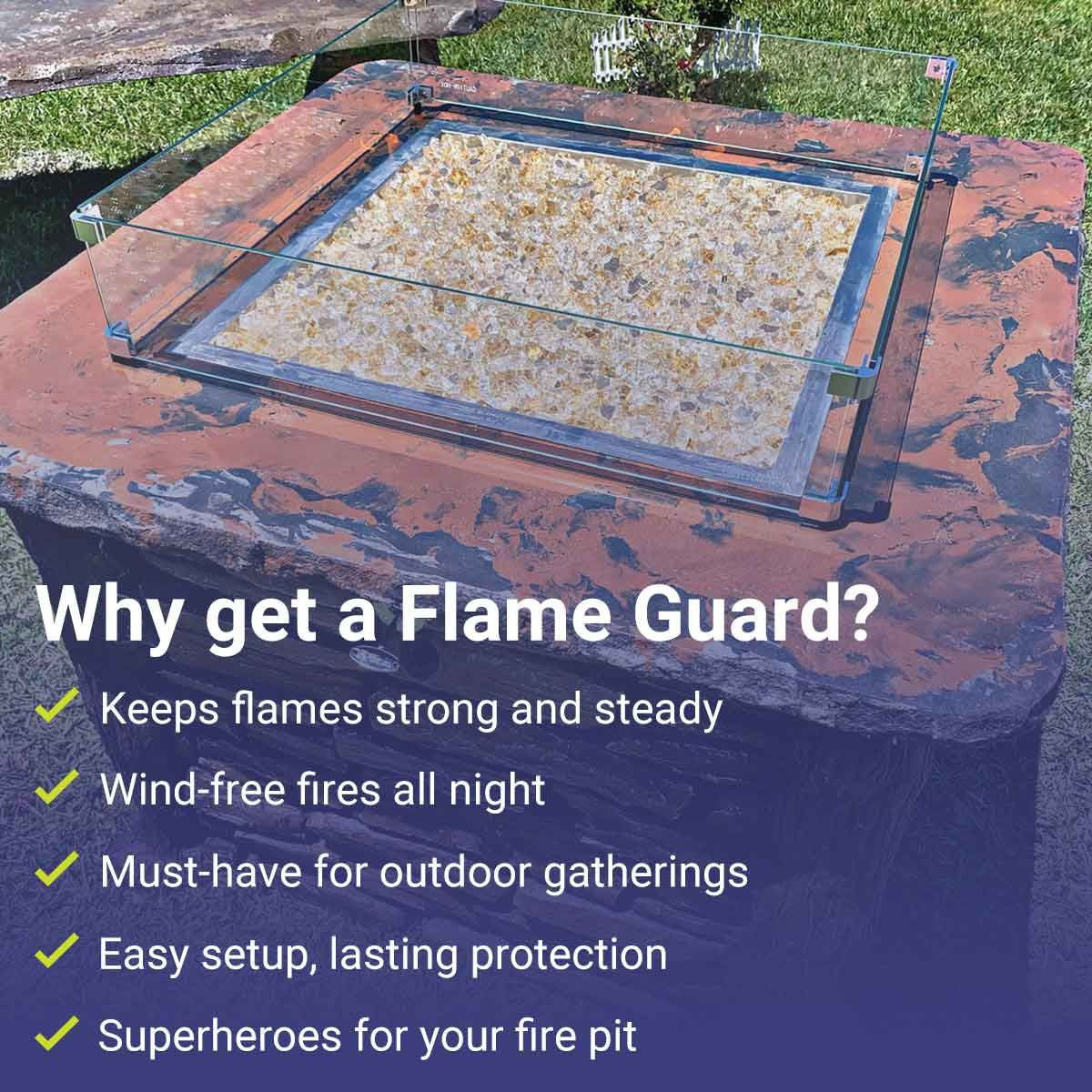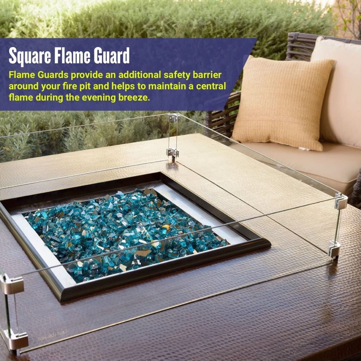 American Fire Glass FG-SQP-12 Fire Pit Glass Flame Wind Guard Square, 17.5x17.5-Inch