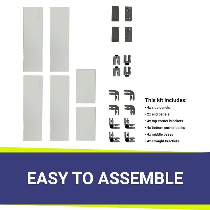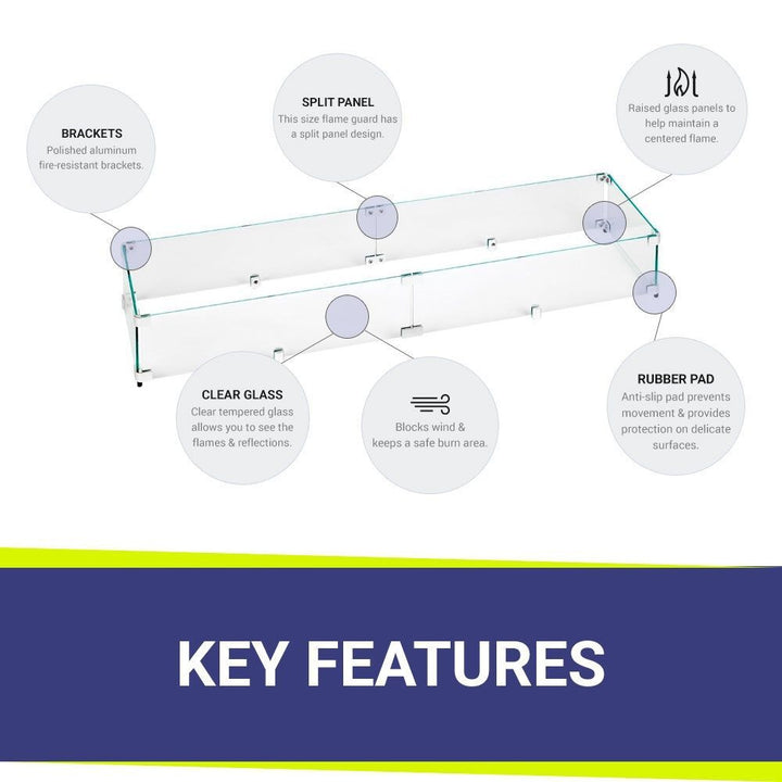 Built to last under outdoor conditions, the flame guard features fire-resistant tempered glass panels, polished aluminum brackets for secure assembly, and non-slip rubber pads for stability on your fire pit.
