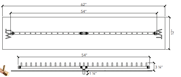 Unleash the power of the 270,000 BTU Match Lit Linear Crossfire Burner - 54" on your DIY project. This match lit linear burner will transform your custom fire feature into something truly amazing, and its quality is backed by ICC Certification and a full lifetime warranty. Plus, it's manufactured in the beautiful USA, so you're supporting domestic manufacturing when you buy it, too!