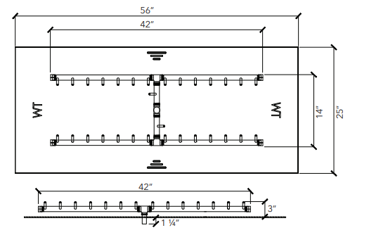 Chart a new DIY frontier with the 300K BTU Match Lit Crossfire H-Burner - 44" from Warming Trends. Rather than simply a line of flames, this innovative burner creates an H-shaped flame pattern that will truly stand out. Plus, its exclusive air-to-gas mixture ratio allows it to produce these stunning flames with only half the fuel of a typical fire ring. This burner is perfect for whatever type of custom fire feature you're building. With a heat output of 300,000 BTUs, it will not only provide glowing radiance, but also plenty of comfortable heat.