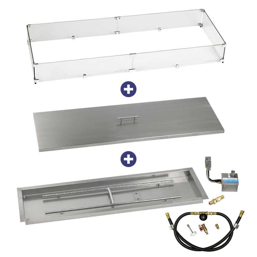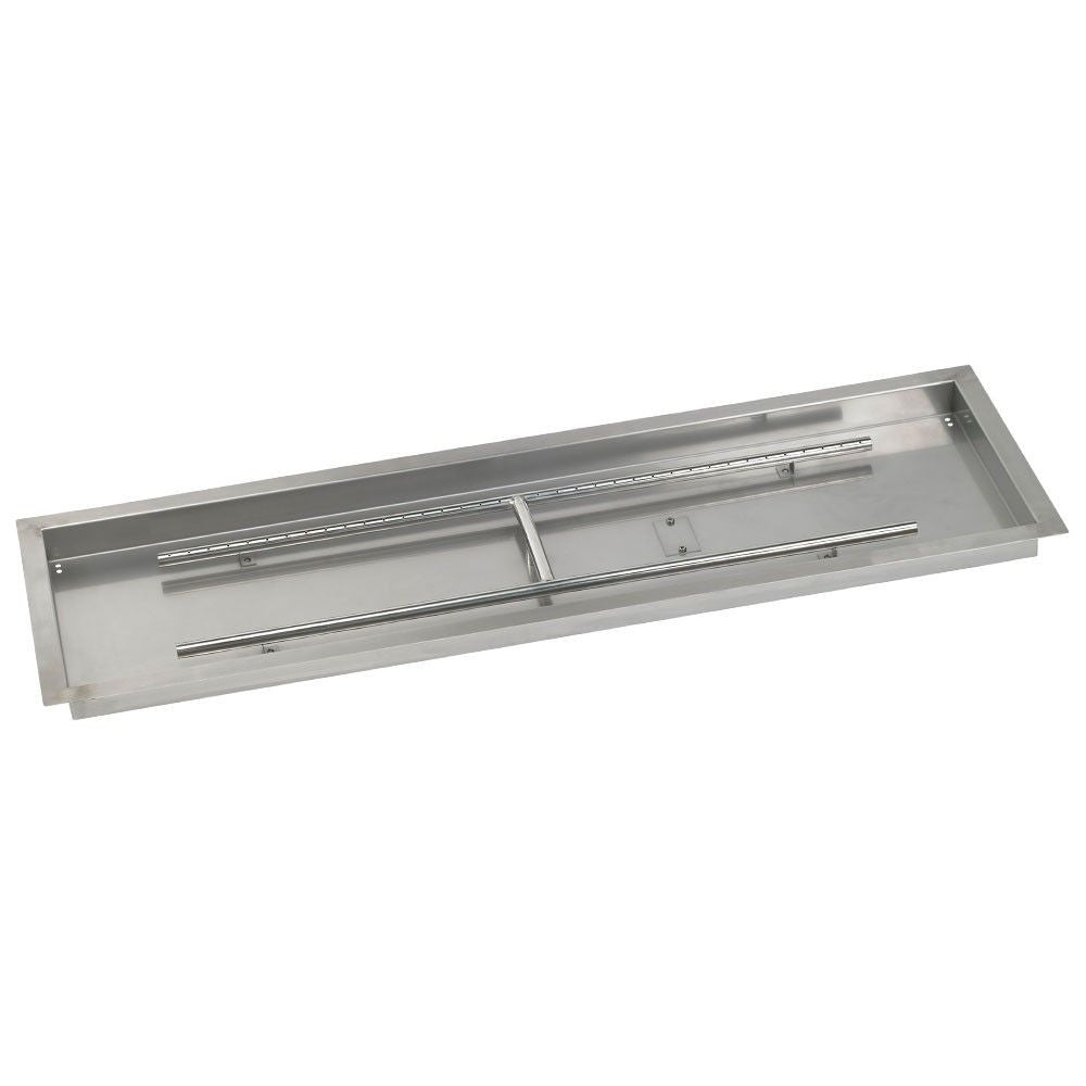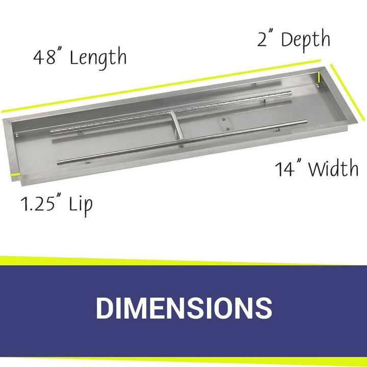 American Fire Glass 48" x 14" Rectangular Stainless Steel Drop-In Pan with AWEIS System. This top-of-the-line fire pit pan offers a sleek and modern design crafted from high-quality 304 stainless steel for long-lasting durability and a polished look.