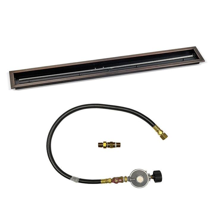 Enjoy the warmth and ambiance of a fire pit on your patio with the American Fire Glass Drop-In Pan. This long-lasting pan is made from stainless steel and finished in a stylish oil rubbed bronze for a sleek look. Measuring 60 inches long and 6 inches wide, it's ideal for creating a custom fire pit in your desired size and shape.