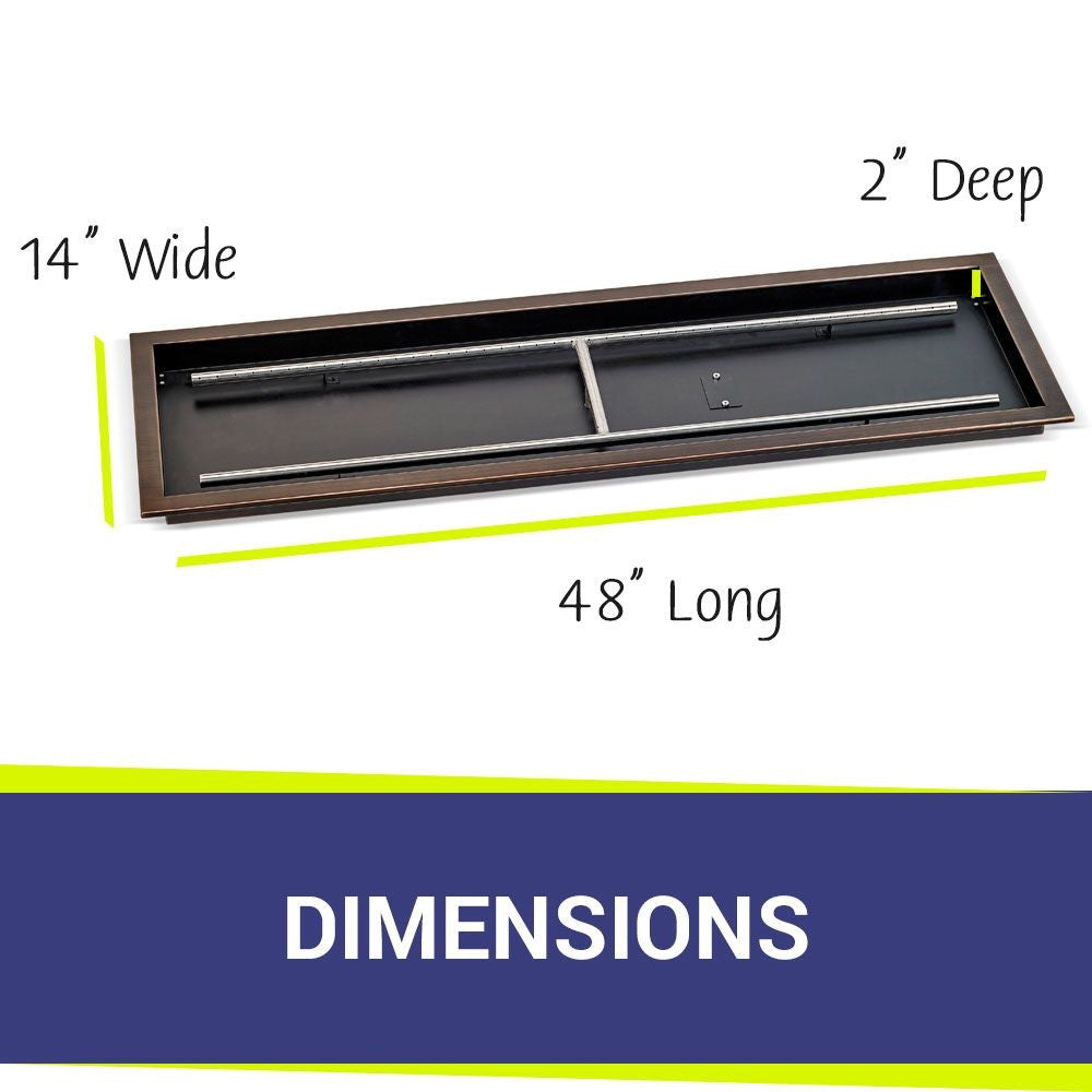 American Fire Glass Rectangular Oil Rubbed Bronze Drop-in Pan with Burner - OB-AFPP-48