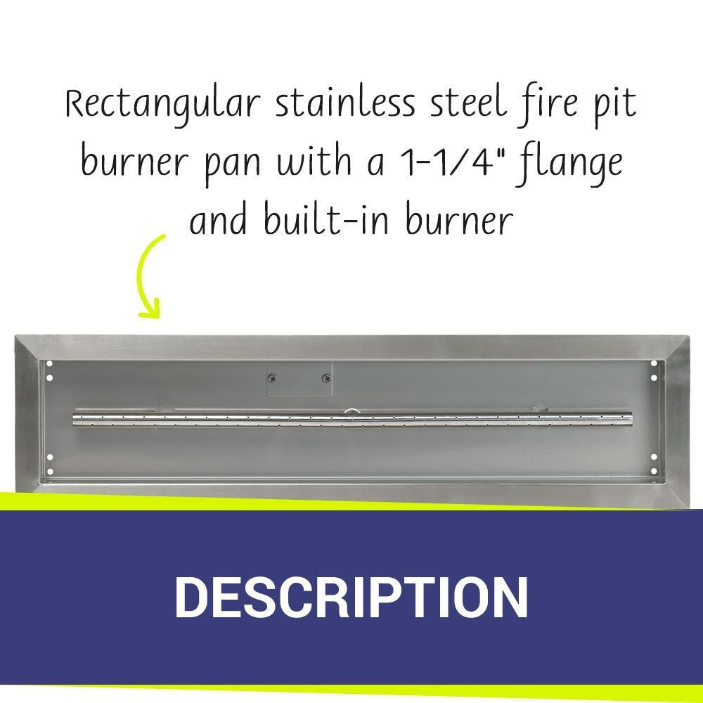 American Fire Glass Stainless Steel Linear Drop-in Fire Pit Burner Pan - SS-LCB-30
