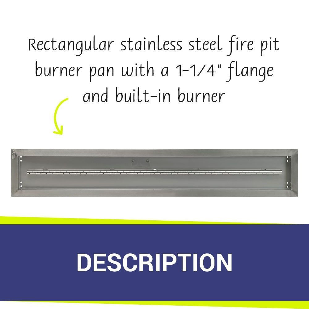 American Fire Glass Stainless Steel Linear Drop-in Fire Pit Burner Pan - SS-LCB-48