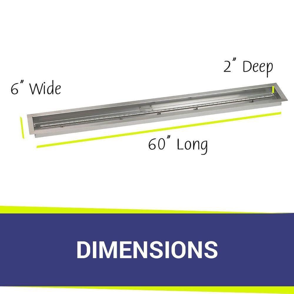 This top-of-the-line fire pit pan is crafted from durable 304 stainless steel, ensuring it can withstand the harshest weather conditions without rusting or warping. Measuring 60 inches long by 6 inches wide and 2 inches deep, this liner pan creates a false bottom for your fire pit, significantly reducing the amount of fire glass you'll need to create a dazzling fire display.