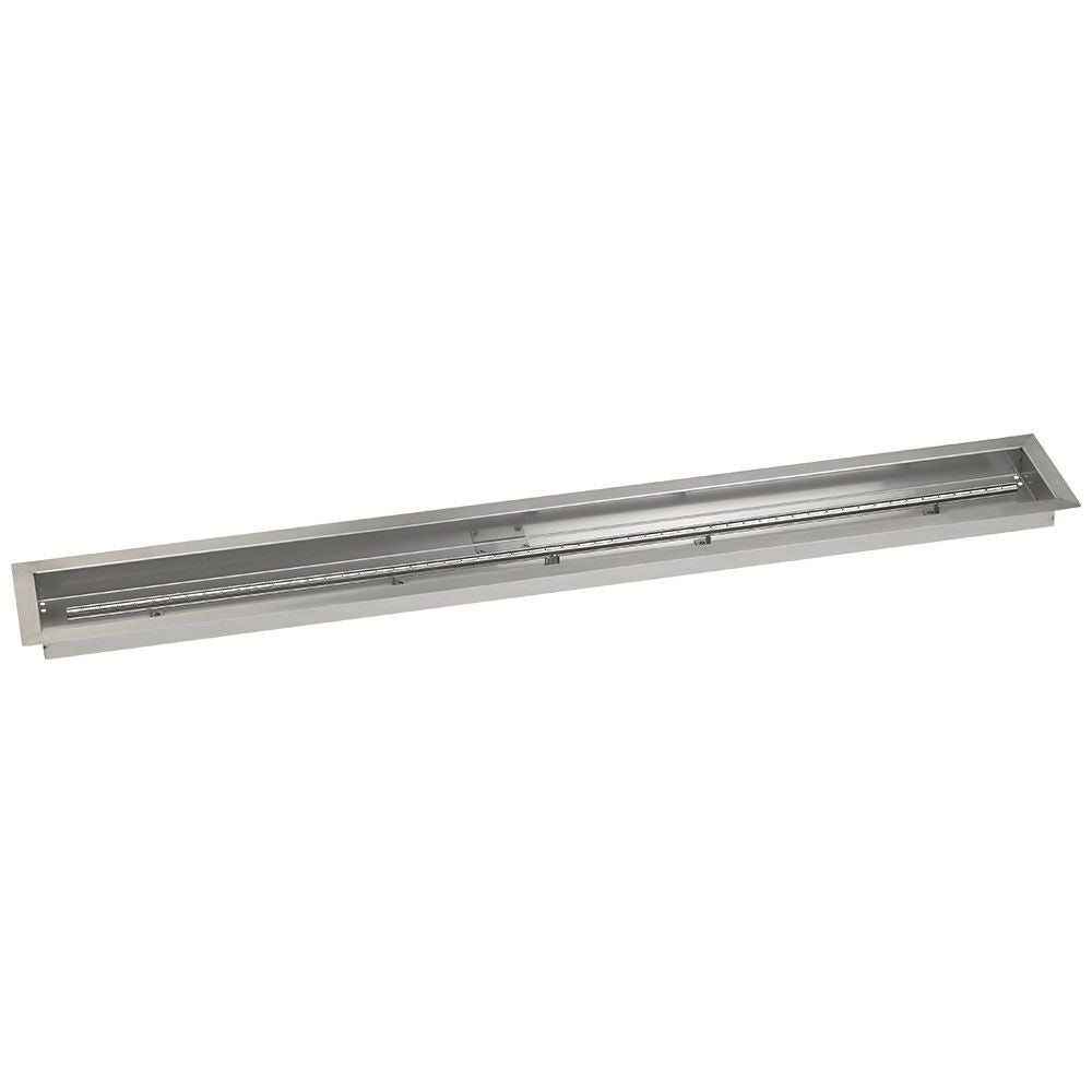 Transform your outdoor space into a fiery oasis with the American Fire Glass Stainless Steel Linear Drop-In Fire Pit Burner Pan!