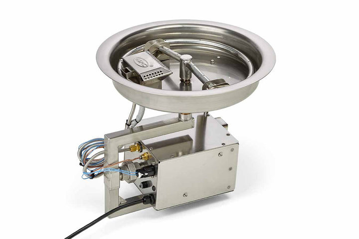 - Fully Assembled Fire Pit. Includes 19" I.D., Round 16 Gauge 304 SS Pan, 12" Penta, SS Fire Ring; 16 Gauge SS Valve Control Box; Hot Wire Ignition