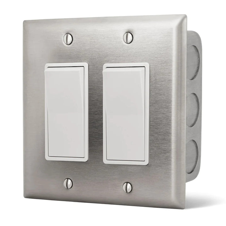 Seamless integration: The sleek stainless steel wall plate complements any outdoor decor, while the included gang box simplifies installation into your existing electrical system.