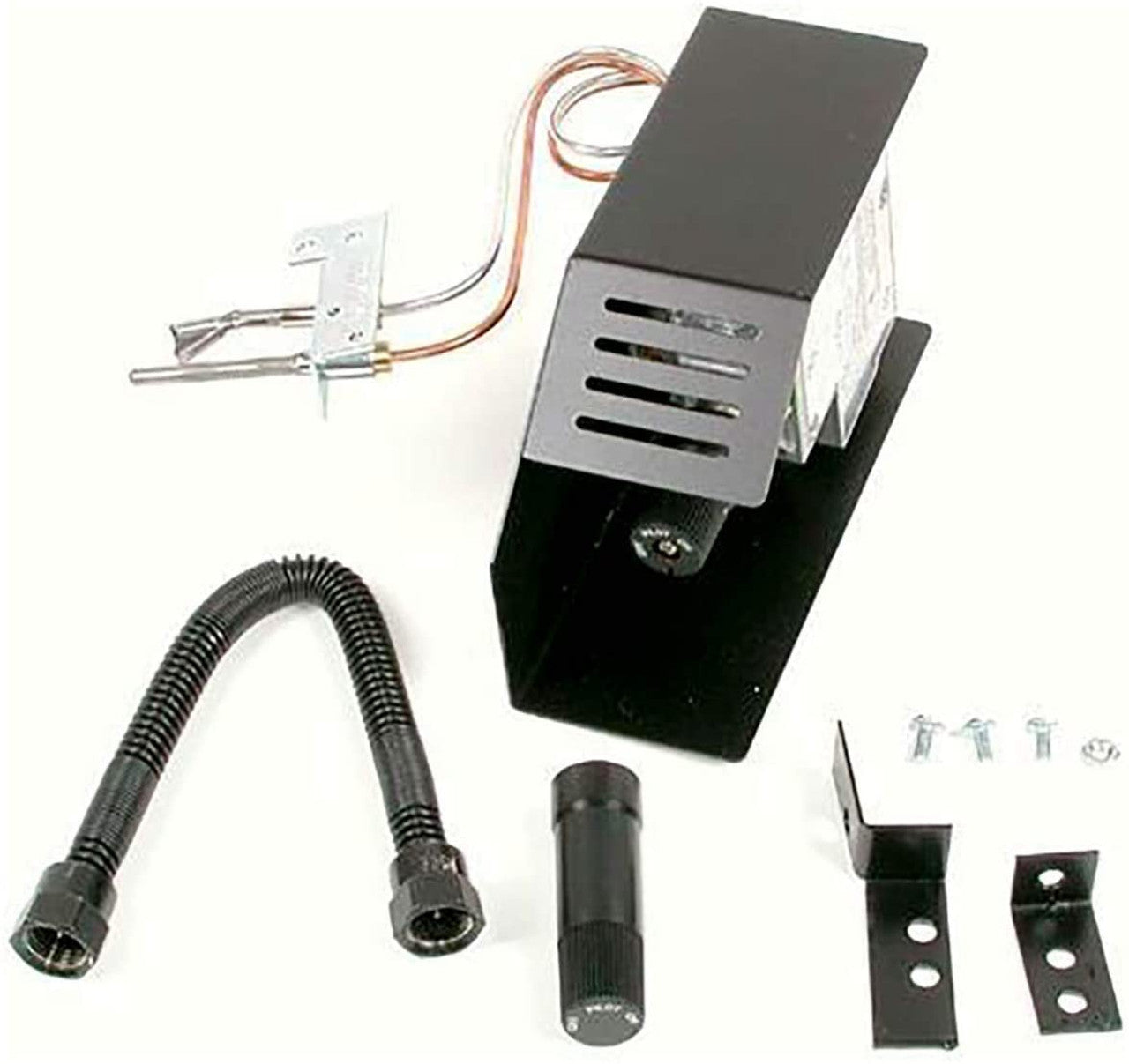 The Rasmussen Flaming Ember Burner with Manual Safety Pilot Control is a gas burner designed to create a realistic fire look in your fireplace. It features a single burner tube that produces dancing flames and a compact ember bed for a natural aesthetic.