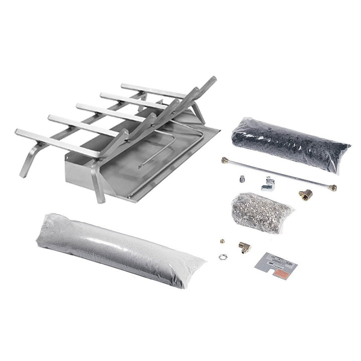 - Complete fireplace solution: The kit includes everything you need for a hassle-free installation, including the burner, grate, pan filler (sand for natural gas or volcanic ash for propane), ember magic for enhanced flame appearance, a flexible stainless steel connector, damper clamp, and clear instructions.