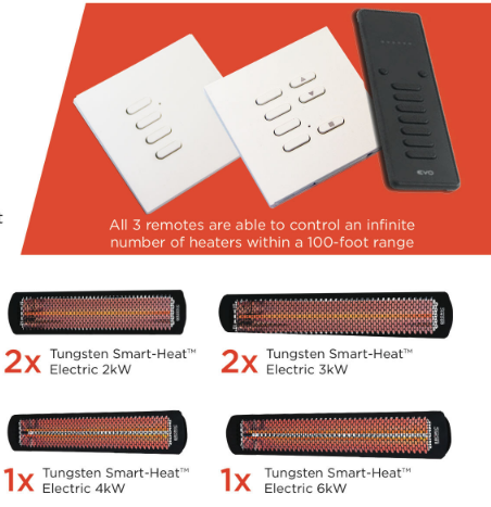 Rasmussen Gas Logs & Grills Bromic Patio Heaters feature all-new Wireless Controllers that are the first of their kind. Seamlessly integrating purpose-designed wireless receivers into wired power supplies in a way that simplifies installation and allows effortless adjustment of electric heater output via a range of wireless remote transmitters. As a genuine manufacturer-supported accessory, these controllers allow users to customize comfort with confidence in the fact that each unit has passed Bromic Heating’s rigorous product testing and will work exactly as intended.Each unit is capable of controlling up to 6kW of heating energy in a number of configurations, including: