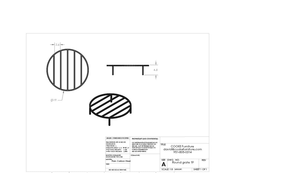 Our circular fireplace grate is most commonly used in outdoor wood burning fire pits. This heavy-duty fireplace grate is built to withstand the weight of hot burning hardwoods and last many seasons of use. Ease lighting your wood fire and improve the quality of your fire by using a grate to keep oxygen flowing to the fuel. This round fire grate is hand made in USA.