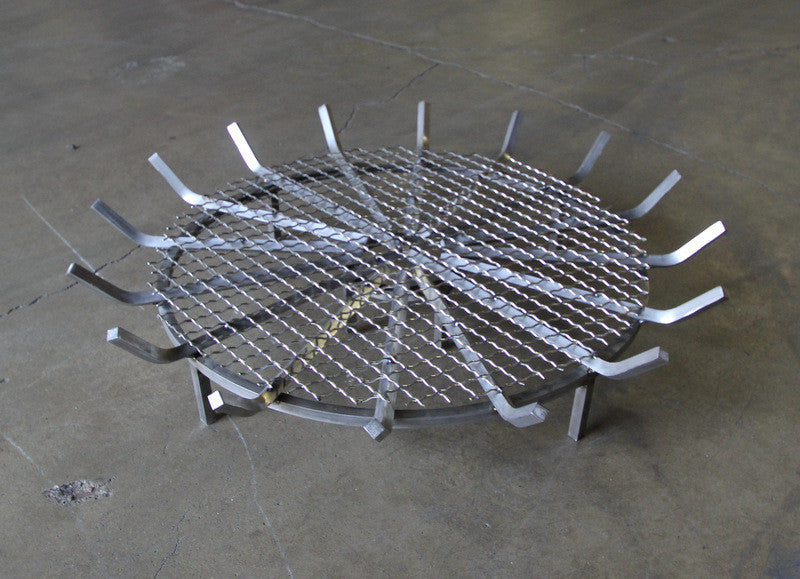Built like a tank, this solid stainless steel fire pit grate is built to last. Made in the USA with stainless steel 5/8" square barstock, this round fire pit grate is very heavy duty and withstands even corrosive coastal climates. Equipped with a mesh bottom, this premium grate supports small kindling while starting a fire and feeds oxygen to the coals after the fire is going. Choose from our selection of sizes below.We make custom grates - if you need taller feet or a different size just let us know. Please allow 2-4 weeks for shipping as we hand make each one and production time varies depending on workload at time of order!